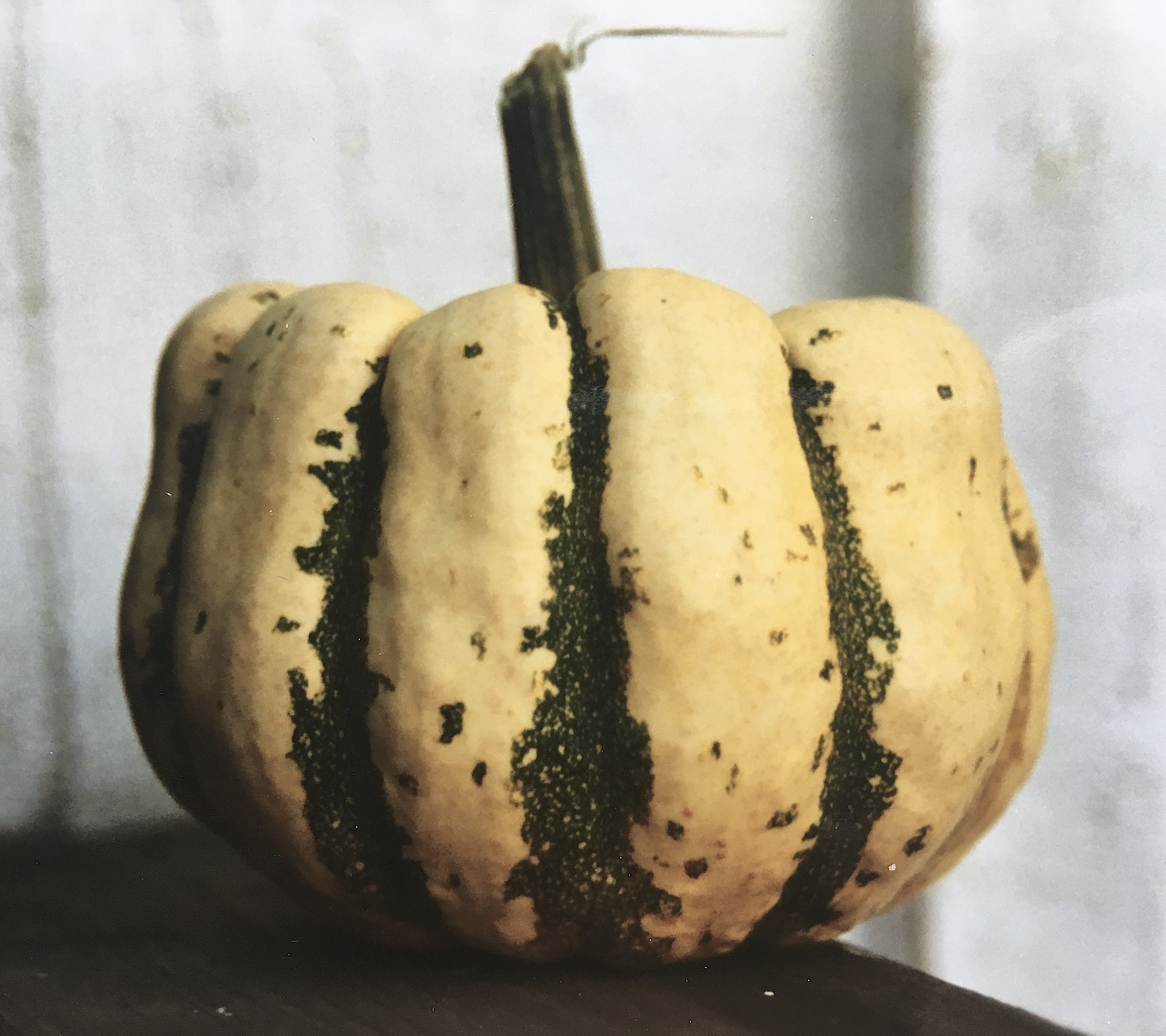 Is a small very decorative delicacy. The creamy, flattened round fruit with ridges and dark-green stripes is usually eaten filled and baked in the oven. The flesh is golden yellow with quite the correct structure and sweetness. It is one of the very best, but it needs a good summer to yield fruit reliably. Sweet Dumpling keeps well and maintains its flavour for 3 -4 months. A portion contains about 8 seeds.