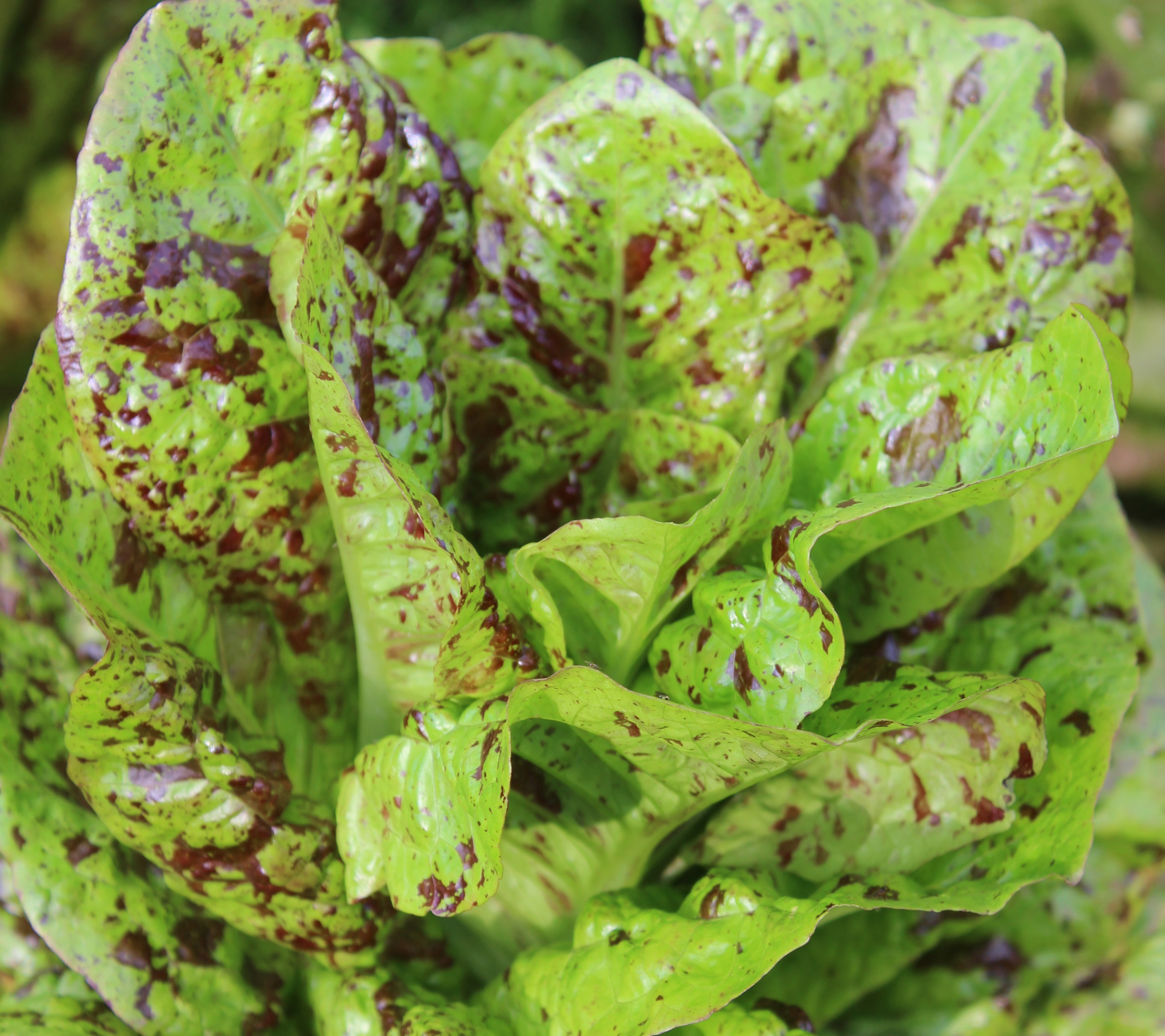 "Freckles" says everything about the looks of this fine Cos lettuce. The leaves are freshly light-green, covered with wine-red spots. The head is the typically high-built Cos head with sweet, juicy leaves, hiding a yellow, crispy interior keeping its spots. Freckles is an old English variety of the old Austrian Forellenschluss. A portion contains about 400 seeds.