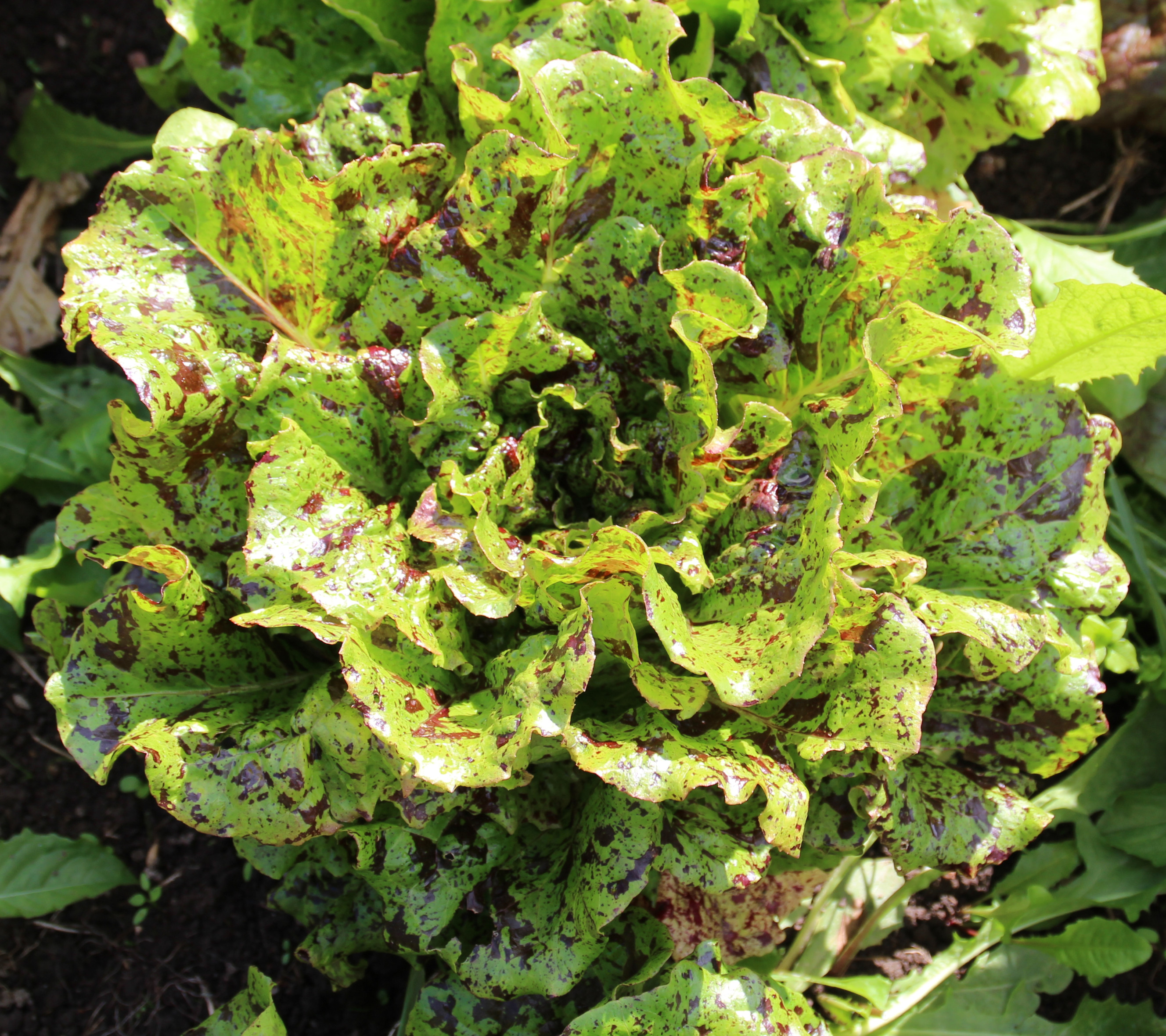 Is spectacularly beautiful with its apple-green leaves speckled with chestnut-brown spots, mild and crispy with quite a loose knit head of cream-yellow interior. It is already mentioned in 1799 and defends its place among all fantastic lettuces with its wonderful flavour and beauty. A portion contains about 300 seeds. MOFGA-certified seed. See under Info etc. - Ecologically grown seeds.
