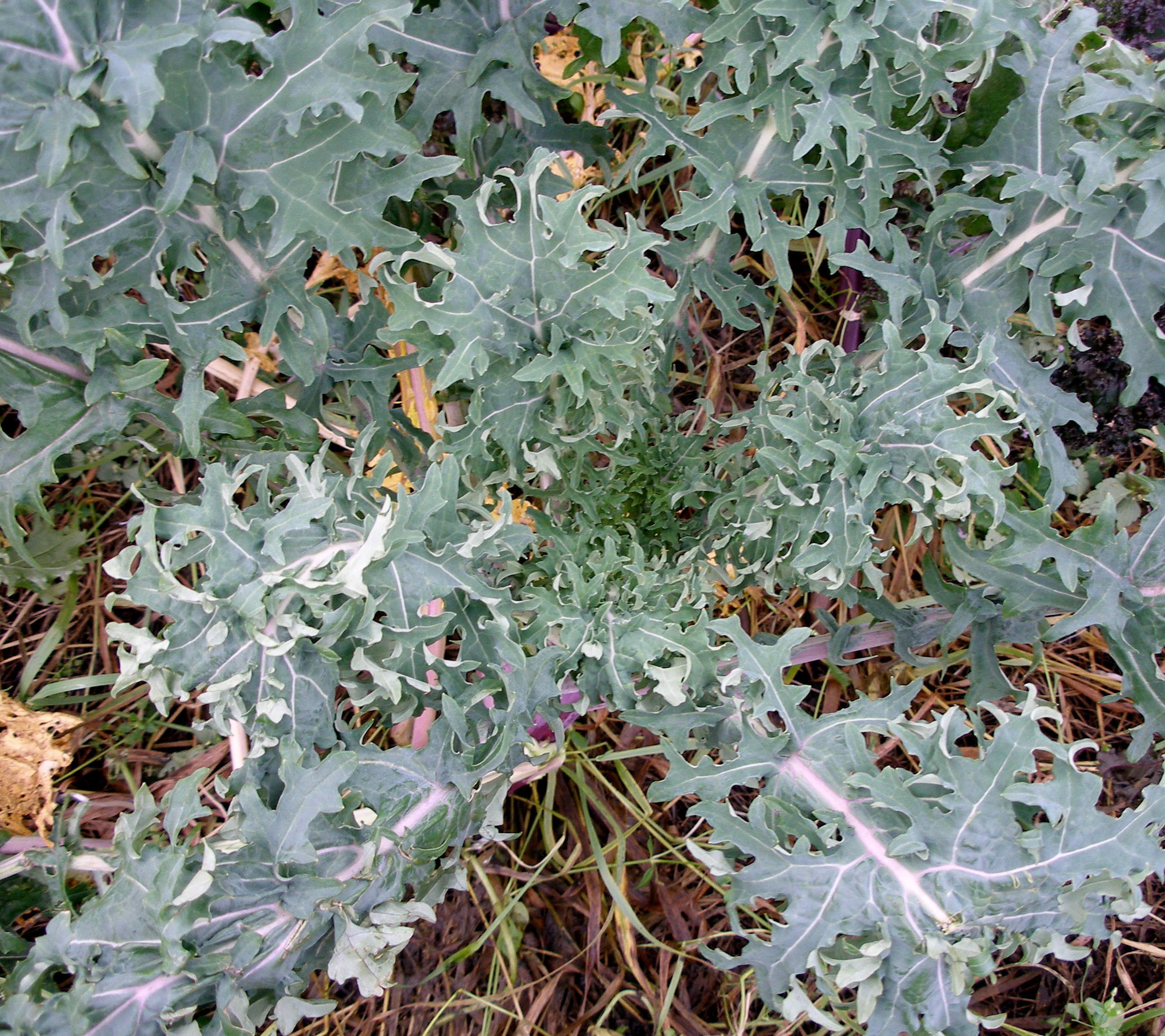 Is probably the mildest and most tender kale of all and one of the most beautiful ones too. The leaves are grey-green with violet stalks and nerves. They are a little crumpled with very serrated edges, resembling large fringed oak-leaves. Young leaves are eaten fresh in salads. The plant grows 40-60 cm tall and is not completely hardy. Red Russian was mentioned for the first time in 1863.