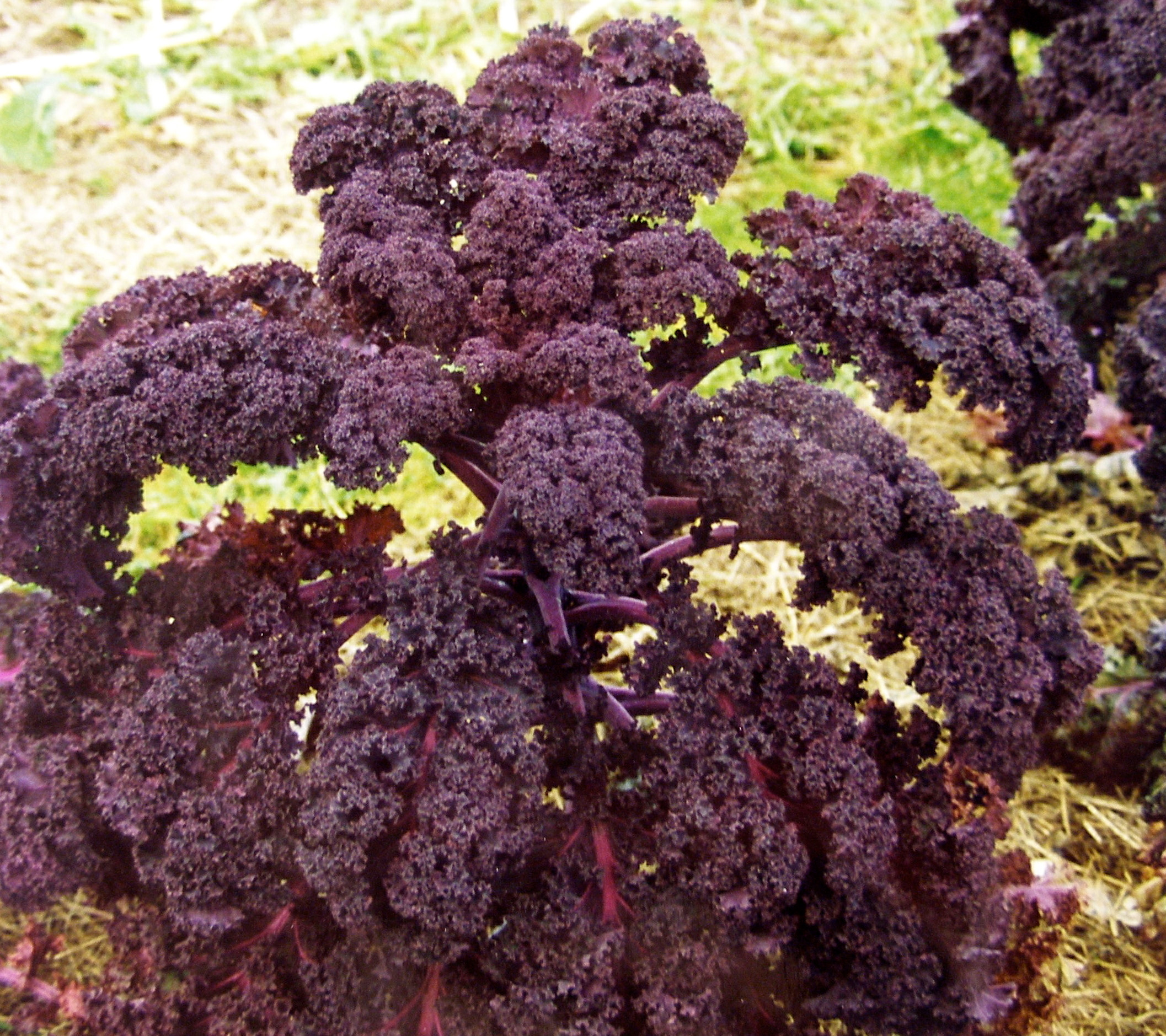 Purple kale. This old sort originates in the Baltic States. We received it from there in 1986 and have propagated it since then. The whole plant is heavily dark-violet even out to the ends of the leaves. The stalk is 50-60cm tall and firmly rooted in the soil. The leaves are of medium size and finely curled. Baltic Red is very grand, beautiful and hardy and yields a good crop which turns dark-green when boiled. A portion has about 100 seeds.