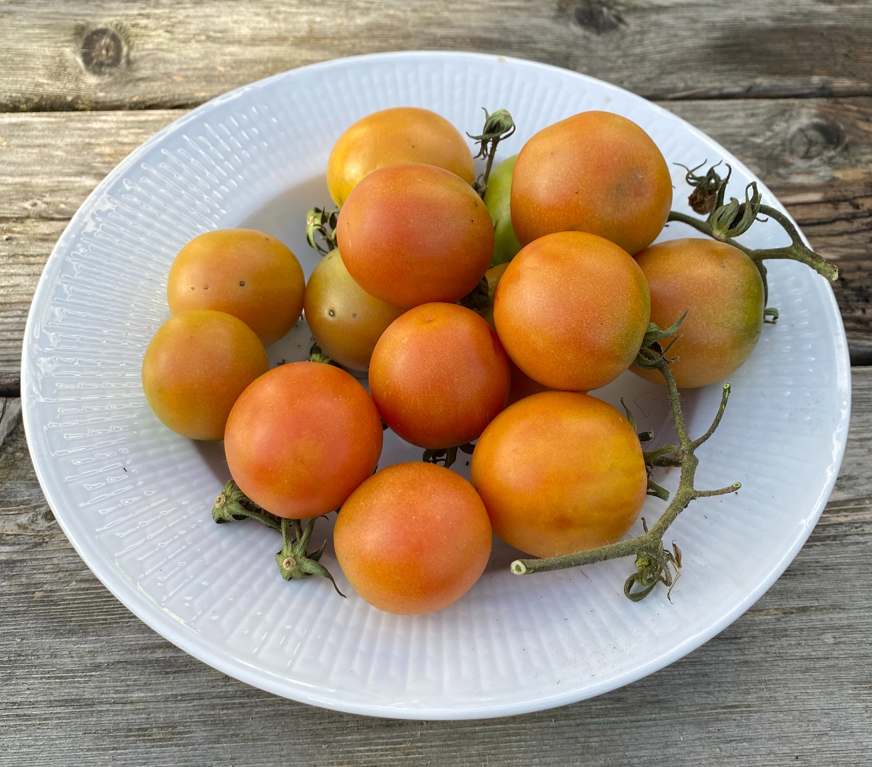 Pick the tomatoes when they are fully ripe and warm from the sun! But for this winter variety it needs to be late in the season, autumn rather than summer. Otherwise it will not develop the keeping ability. Ponderosa can be stored in room temperature and benefit from keeping, since it gives it time to develop the flavours.If there is risk of frost before all the tomatoes have ripened it is okay to let them after ripen indoors in a dark, cool (8-12°C) place. The whole de-leaved plant can also be hung upside down indoors and harvested gradually. Green tomatoes can be preserved or used for marmalade or fried. Tomatoes can also be frozen in pieces like peppers and chillies, without parboiling for sauces and casseroles in the future.